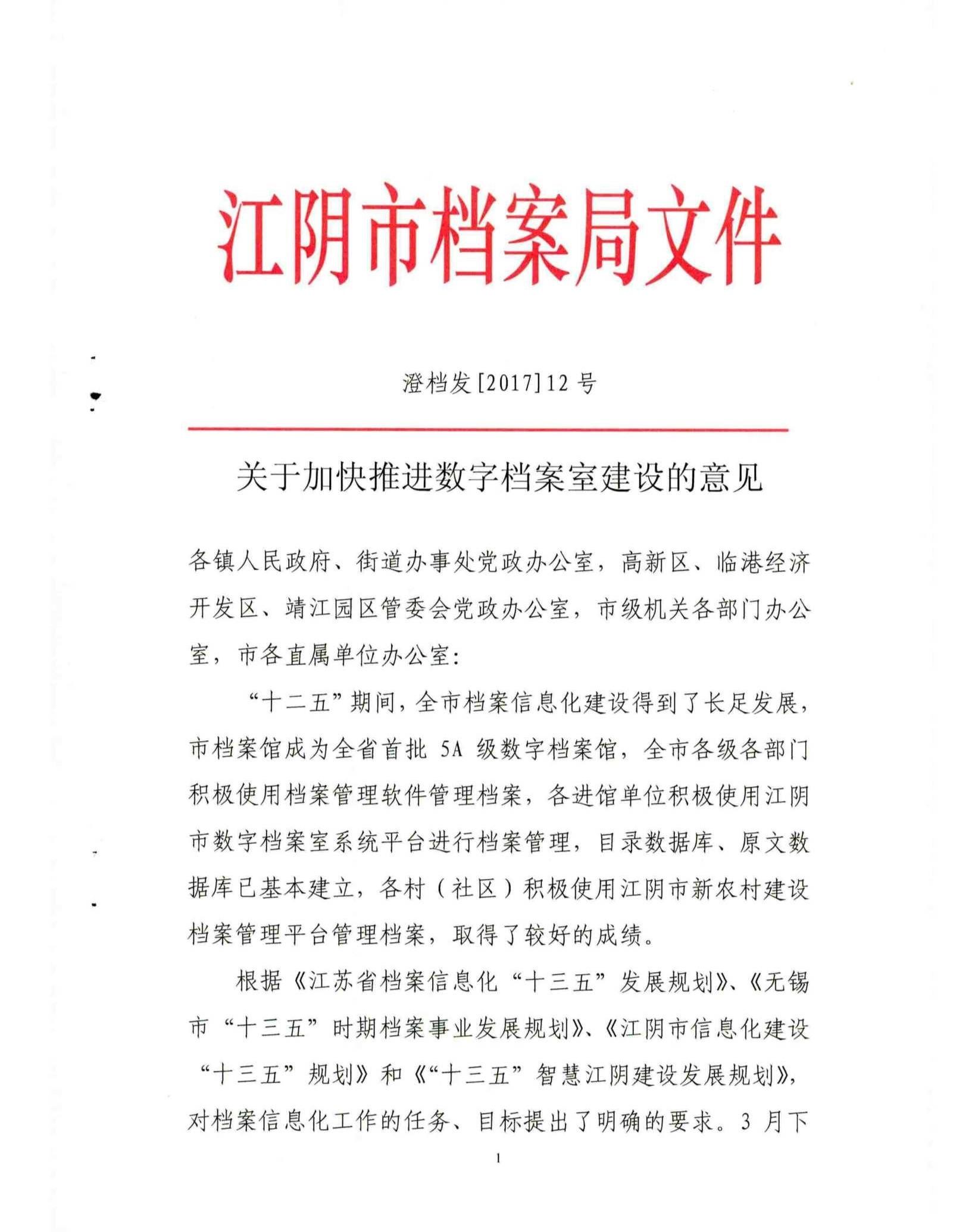 关于加快推进数字档案室建设的意见