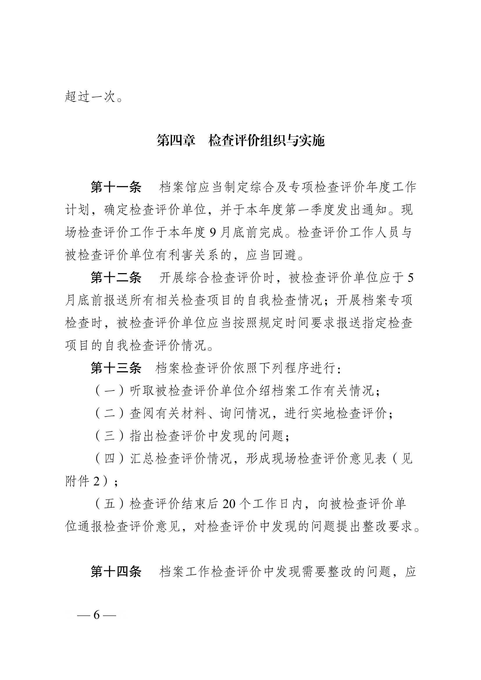 1、今年全面启动机关团体企业事业单位档案工作业务建设检查评价工作。按照每五年一个检查周期,对档案进馆单位及有关单位至少进行一次综合评价或专项评价。