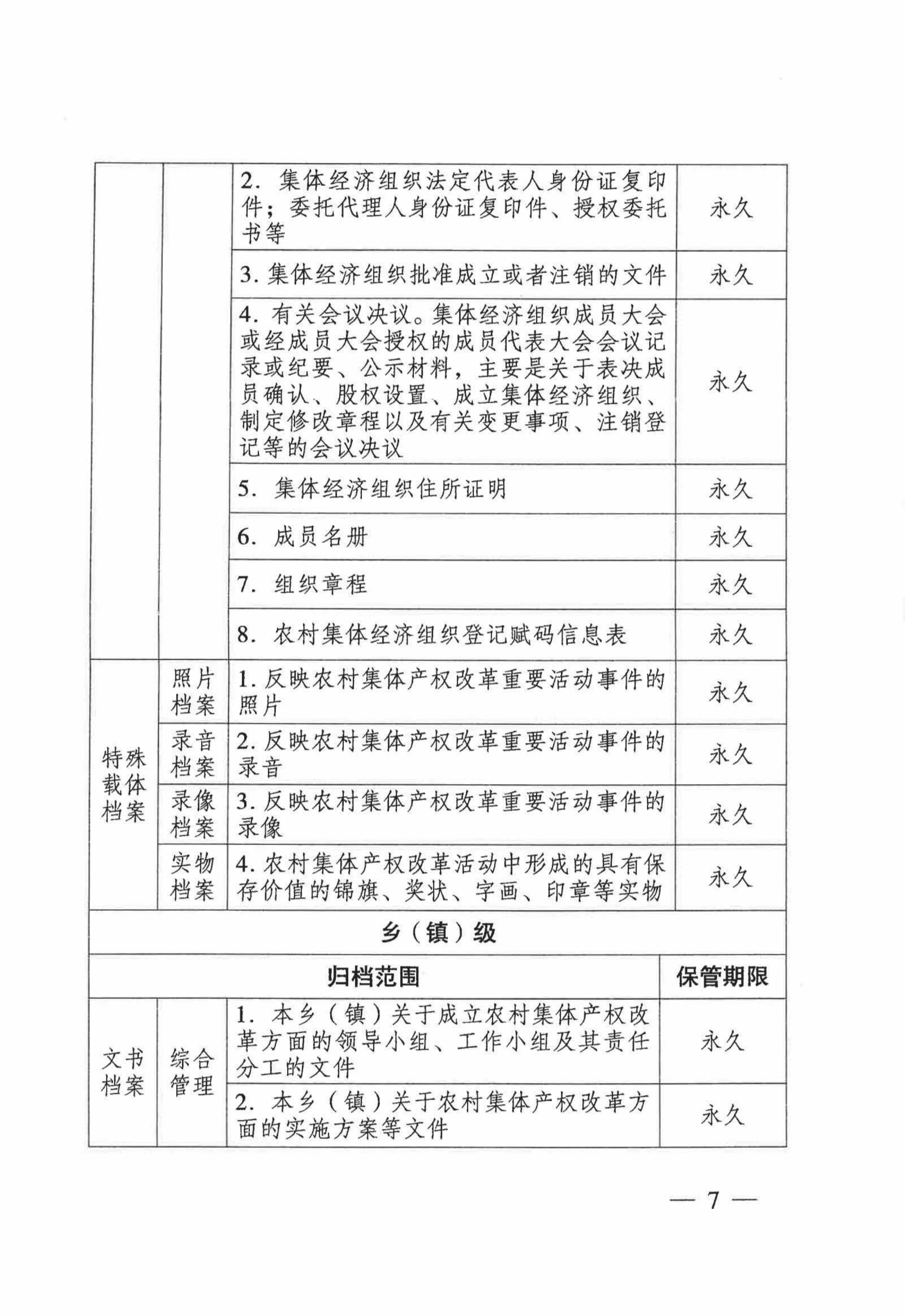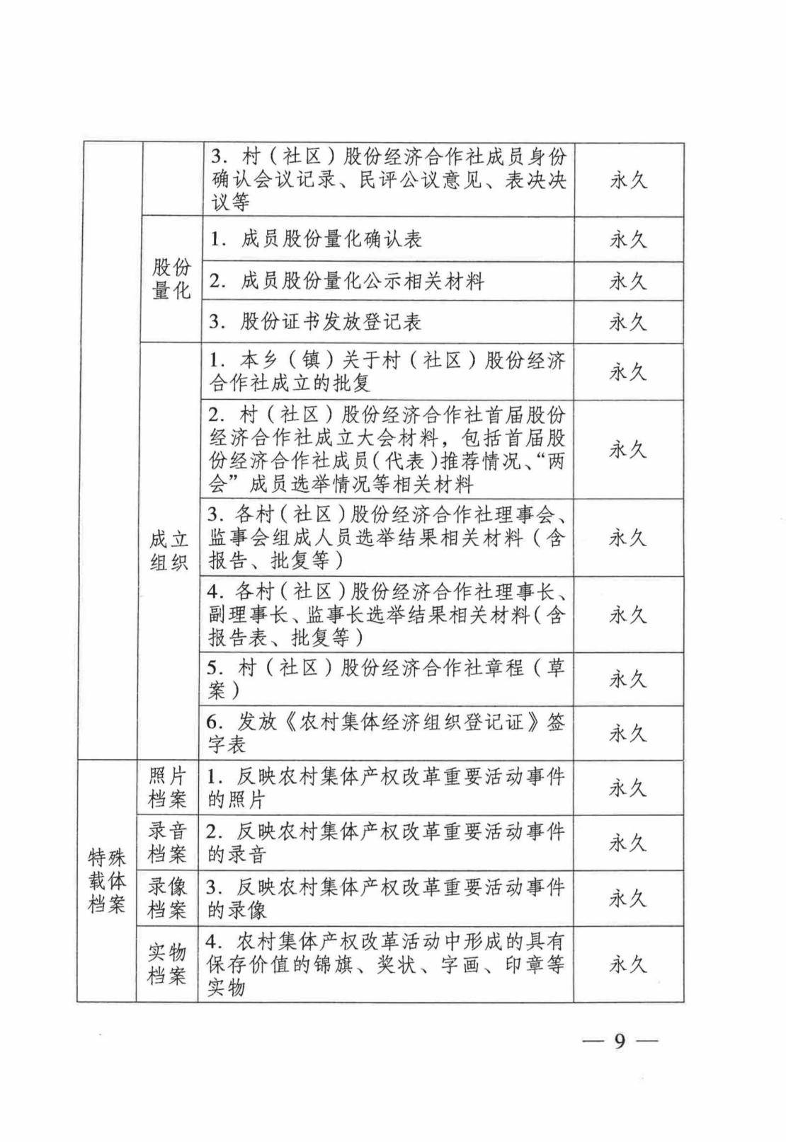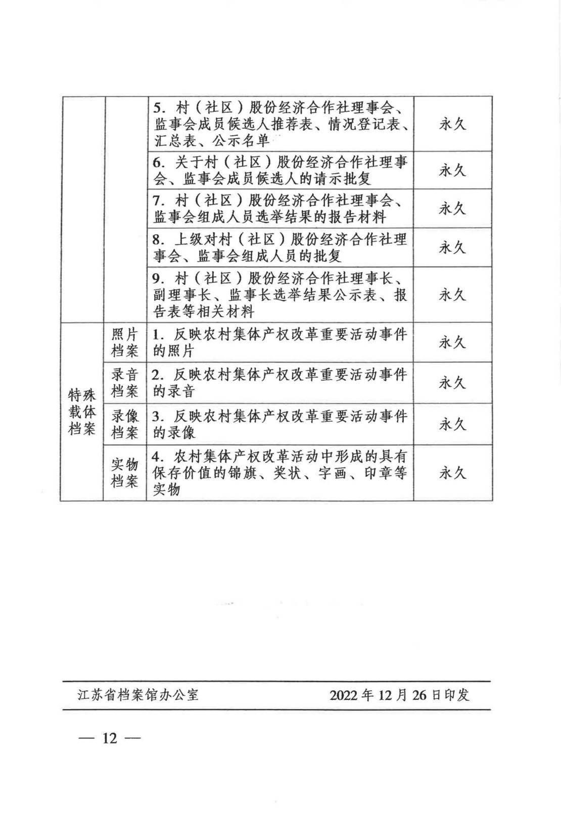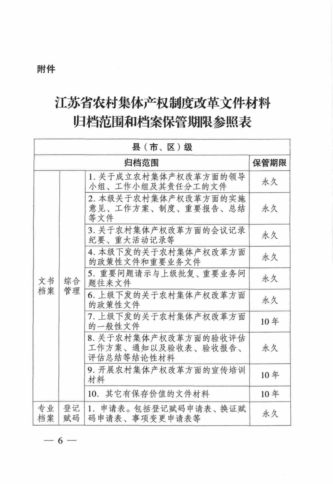 附件:江苏省农村集体产权制度改革文件材料归档范围和档案保管期限参照表
