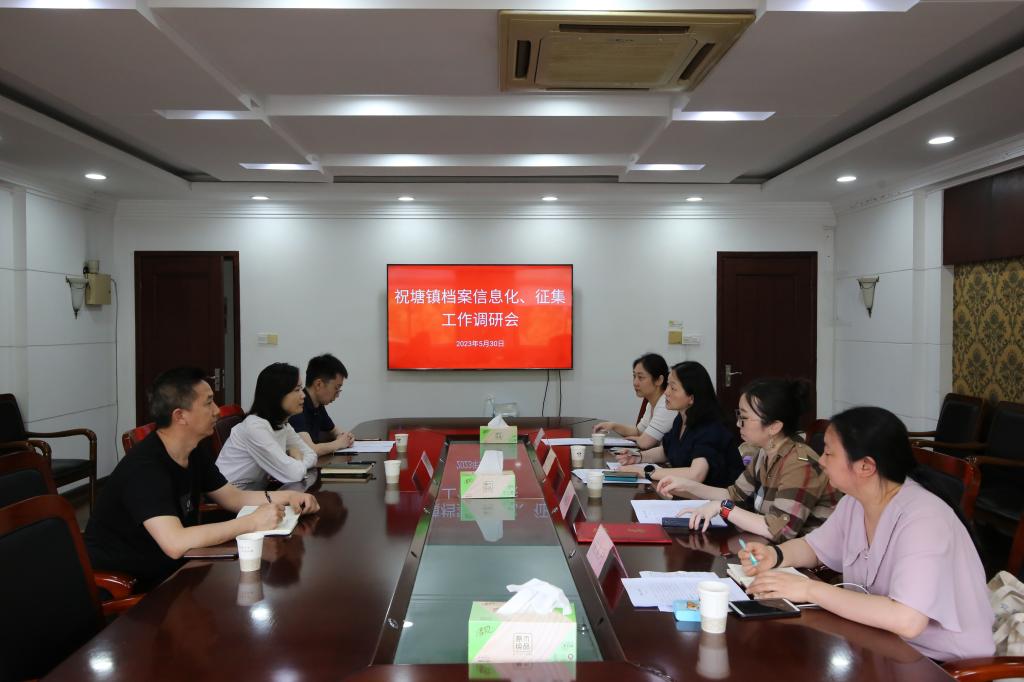 严枫介绍了祝塘镇党委政府重视档案工作的各项措施,就我镇档案信息化建设的思路、存在的问题及相关建议与市馆领导进行了交流。胡昊介绍了镇机关档案室的总体概况,并结合调研内容详细汇报了祝塘镇档案信息化、征集建设情况。